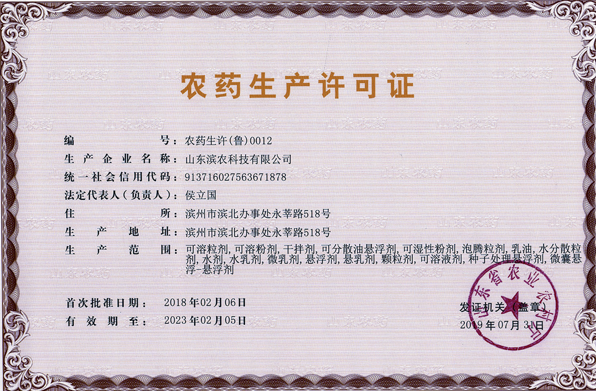 ■2019-09-05 山東濱農科技農藥生產許可證