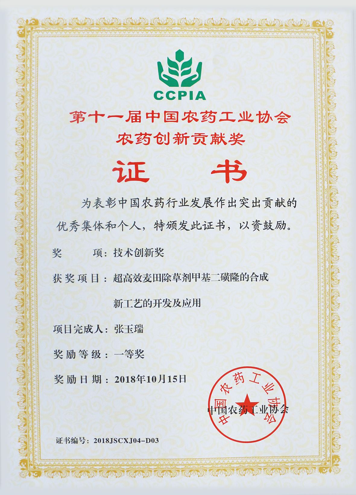 據(jù)悉,在被評(píng)定為綠色產(chǎn)品的11家石油和化工行業(yè)企業(yè)中,僅有2家農(nóng)藥化工企業(yè)獲此殊榮。我公司研究所所長(zhǎng)盛慶全參加了此次大會(huì),并代表公司上臺(tái)領(lǐng)取證書(shū)。