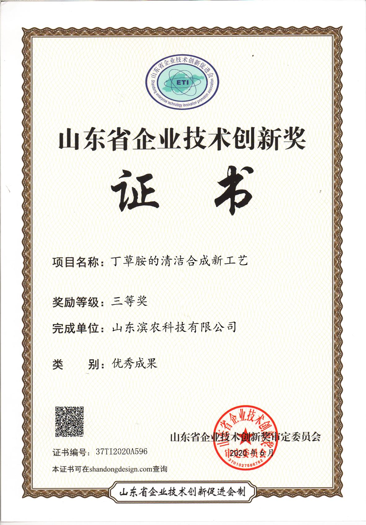 ■2021-04-08 2020-08-05 我公司成果“丁草胺的清潔合成新工藝”榮獲山東省企業(yè)技術(shù)創(chuàng)新獎(jiǎng)優(yōu)