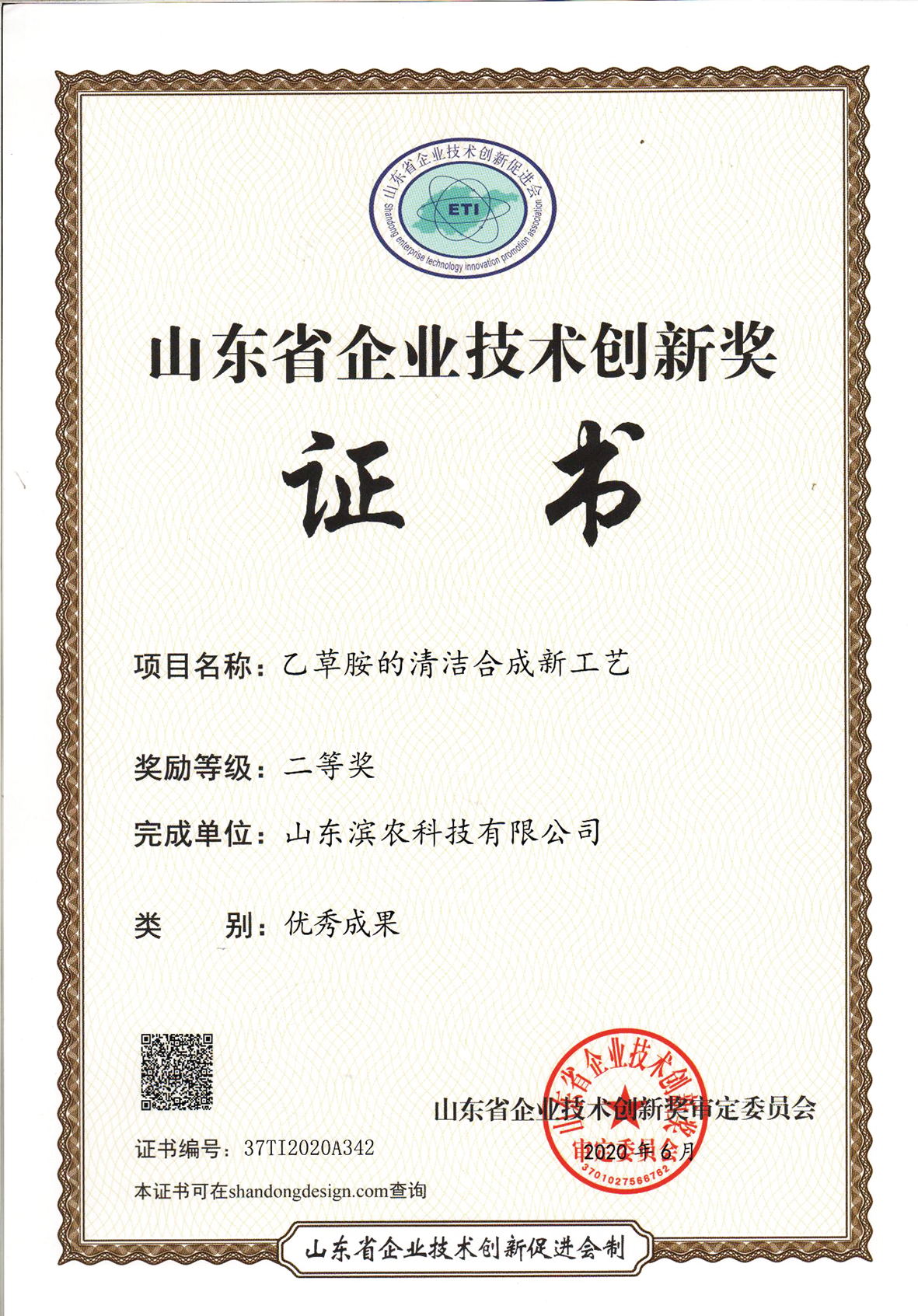 ■2021-04-08 2020-08-05 我公司成果“乙草胺的清潔合成新工藝”榮獲山東省企業(yè)技術(shù)創(chuàng)新獎(jiǎng)優(yōu)