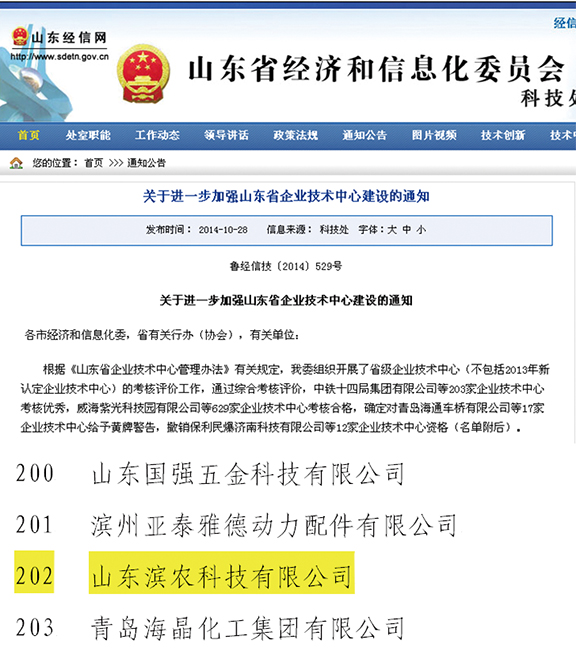 我公司省級認定企業(yè)技術(shù)中心 再次獲評優(yōu)秀發(fā)布時間:2014-11-29 16:12近日,我公司省級認定企業(yè)技術(shù)中心被山東省經(jīng)濟和信息化委員會再次評定為優(yōu)秀,這是我公司繼2012年獲評優(yōu)秀后第二次獲此殊榮。2014年上半年,山東省經(jīng)濟和信息化委員會開展了兩年一次的省級企業(yè)技術(shù)中心考核評價工作,對全省800多家省級企業(yè)技術(shù)中心進行了考評。通過綜合考評,共有203家企業(yè)技術(shù)中心被評定為優(yōu)秀,629家被評定為合格,17家被處以黃牌警告,12家被撤銷資格。