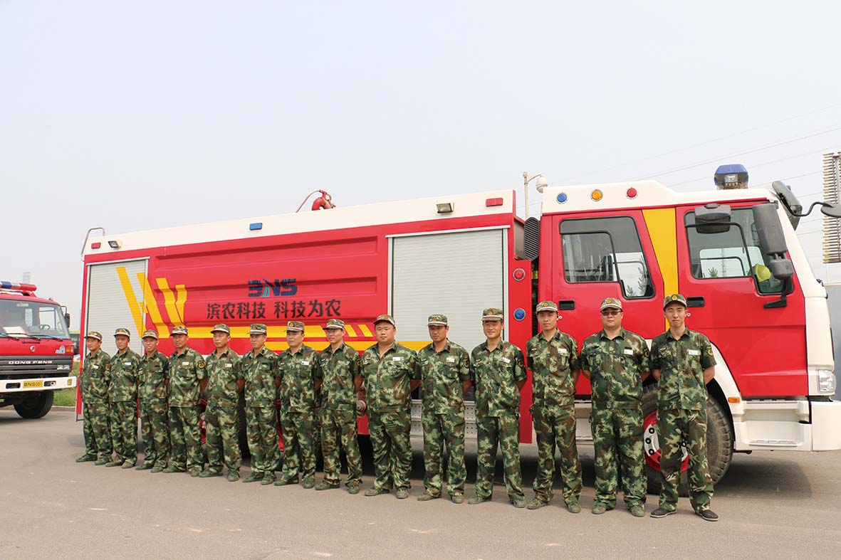濱農科技消防隊現有專職消防員15人,配備了兩臺消防車和兩部消防專用報警電話(5087119/