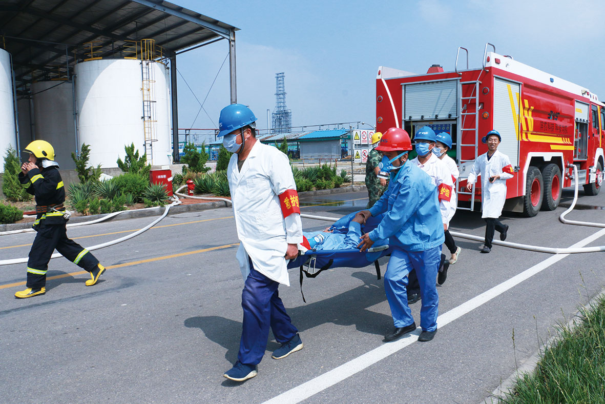 綜合應急救援演練:突發事故處置得當發布時間:2018-07-07 16:146月15日上午,我公司在原料罐區進行了安全、環境事故綜合預案應急演練,濱州工業園區管委會副主任張文杰、應急救援中心主任司志明、經發局副局長李俊善,我公司總經理張茂貴,副總經理侯立國、郭安勇,總工徐家俊、總經理助理張樂樂、副總經理助理趙福廷及部分車間中層、員工近150人參加了此次演練。 我公司安全總監王艷彬擔任現場總指揮,強調了綜合演練的重要性,要求各車間要切實提高員工自身應急逃生能力和對車間突發事故的應急處置能力。此次綜合應急演練主要包括MEA泄漏火災初期應急處置、車間應急預案響應、火災事故失控應急預案升級啟動響應、專職消防隊現場救援、現場及附近人員撤離、中毒受傷人員救治、現場環境污染應急及監測、現場洗消處置及搶險搶修堵漏等環節,演練過程中各應急小組動作迅速、處置措施正確。演練結束后,張總給予肯定并要求在今后的安全管理上我們要不定時、不設場景、不設預案,經常性的搞突襲式演練,通過實戰化演練來提高全體人員面對突發事件的應急處置能力,以最大限度減少人員傷亡和財產損失;同時,對演練過程中出現的問題,要及時總結經驗教訓,及時修改預案,對預案的可行性和可操作性作出實事求是的評估。 本次應急預案演練險情真實,處置措施得當,從火情發生到疏散解救、撲滅火災、及時、有效,保障了人身安全,避免了財產損失;真正做到了分工明確,職責到人,在火情發生的第一時刻,疏散搶救不慌亂,后勤保障準確到位,搶險救災及時、安全。