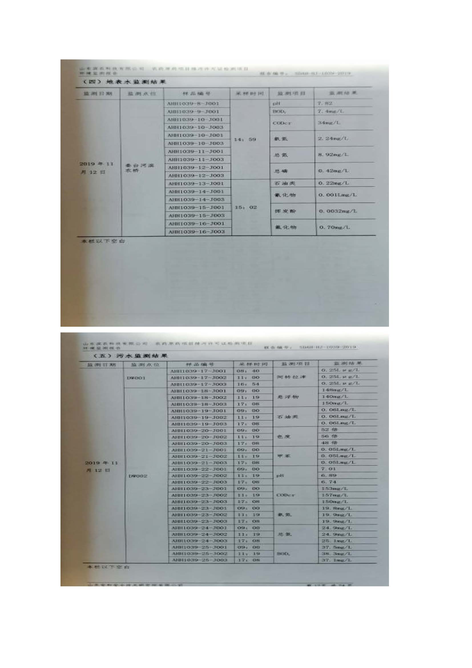 山東濱農科技有限公司2019 年第四季度環境信息公示