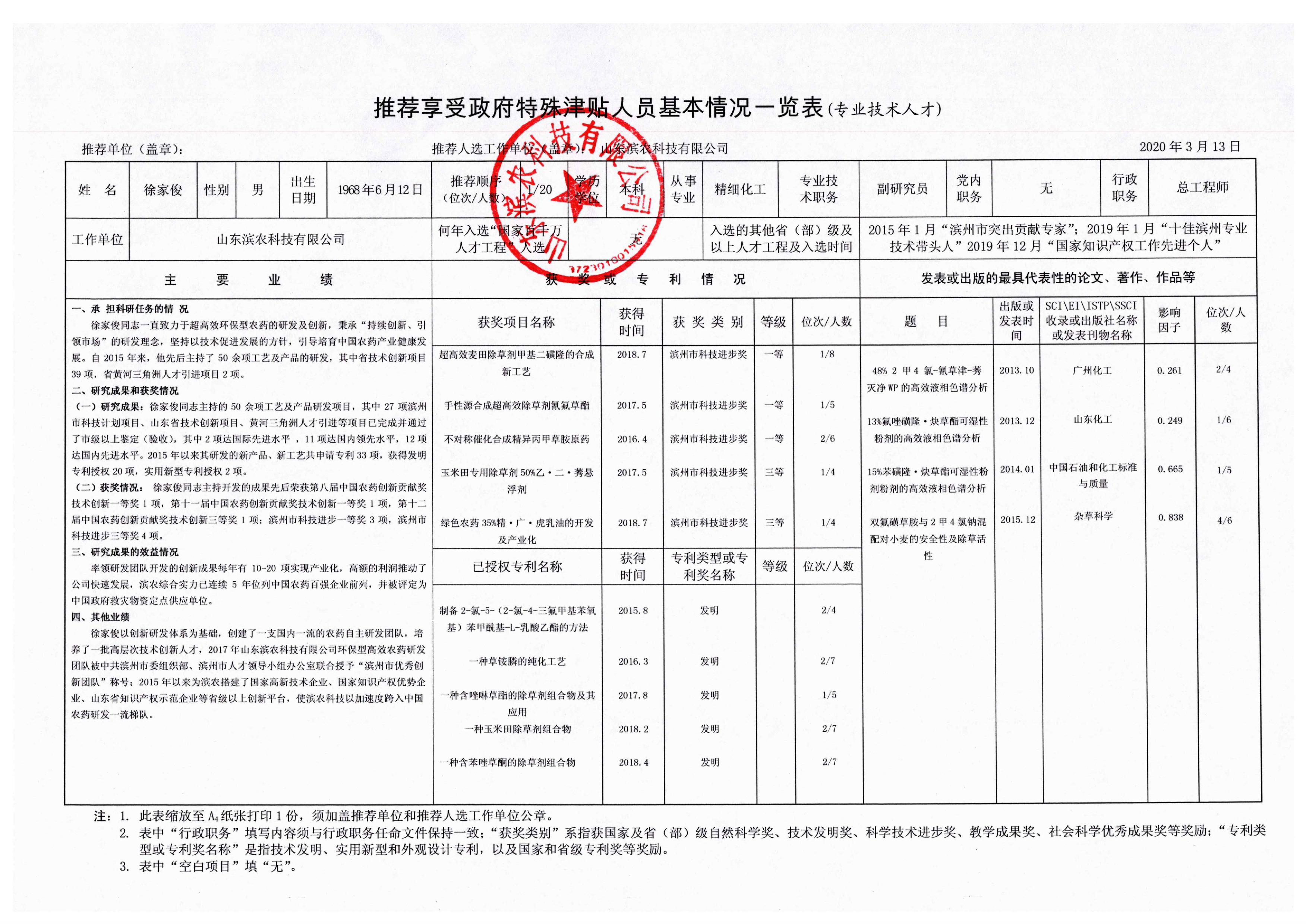 車間、部門: 根據山東省人力資源和社會保障局下發的《關于做好2020年享受政府特殊津貼人員推薦選拔工作的通知》,經公司內部評審,現將我公司2020年度享受政府特殊津貼人員擬推薦選拔人員予以公示。 徐家俊,男,1968年6月出生,1992年7月參加工作,本科學歷,現任山東濱農科技有限公司科研所總工程師。 公示期2020年3月14日—18日,共5天,在公示期內如有疑問,可以書面或口頭形式向本公司人力資源部反映。 聯系人:孫如娟 聯系電話:0543-5087680