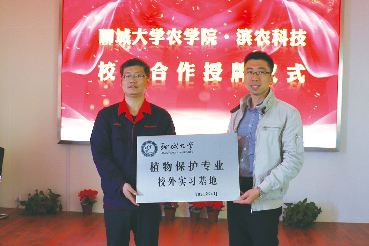 聊城大學農學院與我公司舉行合作共建實習基地簽約暨揭牌儀式發布時間:2021-05-13 16:42