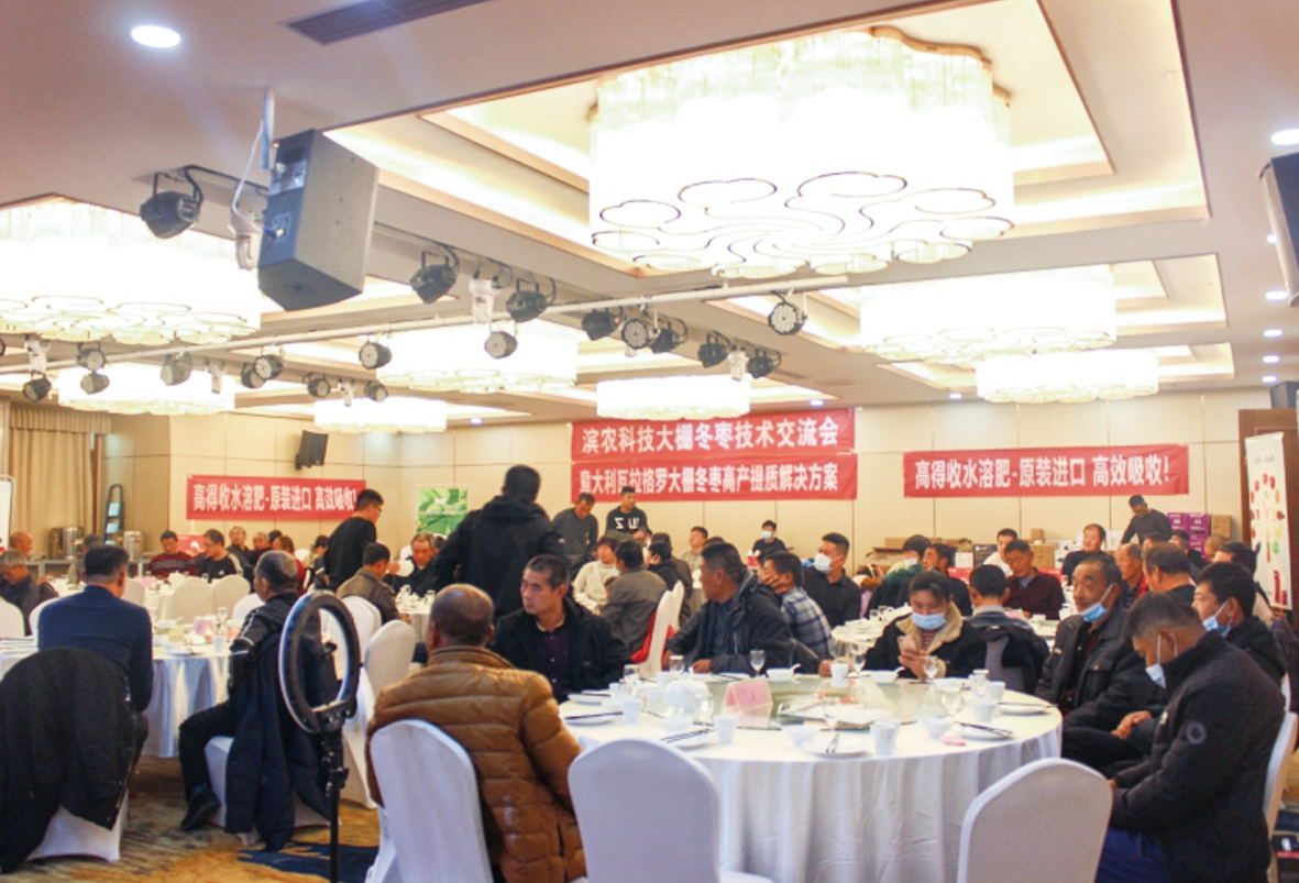 12月15日,我公司為答謝廣大新老客戶信賴,聯(lián)合意大利品牌“瓦拉格羅”在沾化區(qū)舉行了“濱農(nóng)科技大棚技術(shù)交流會暨2022年訂貨會”,沾化區(qū)大棚種植戶、直營店經(jīng)銷商、棗農(nóng)70余人參會,濱州市沾化區(qū)沾化冬棗技術(shù)專家組首席專家、高級農(nóng)藝師李福友老師,意大利瓦拉格羅股份有限公司山東區(qū)技術(shù)經(jīng)理孫浩,我公司新零售事業(yè)部副經(jīng)理蔡瑞孝及沾化直銷區(qū)各業(yè)務(wù)經(jīng)理參會。