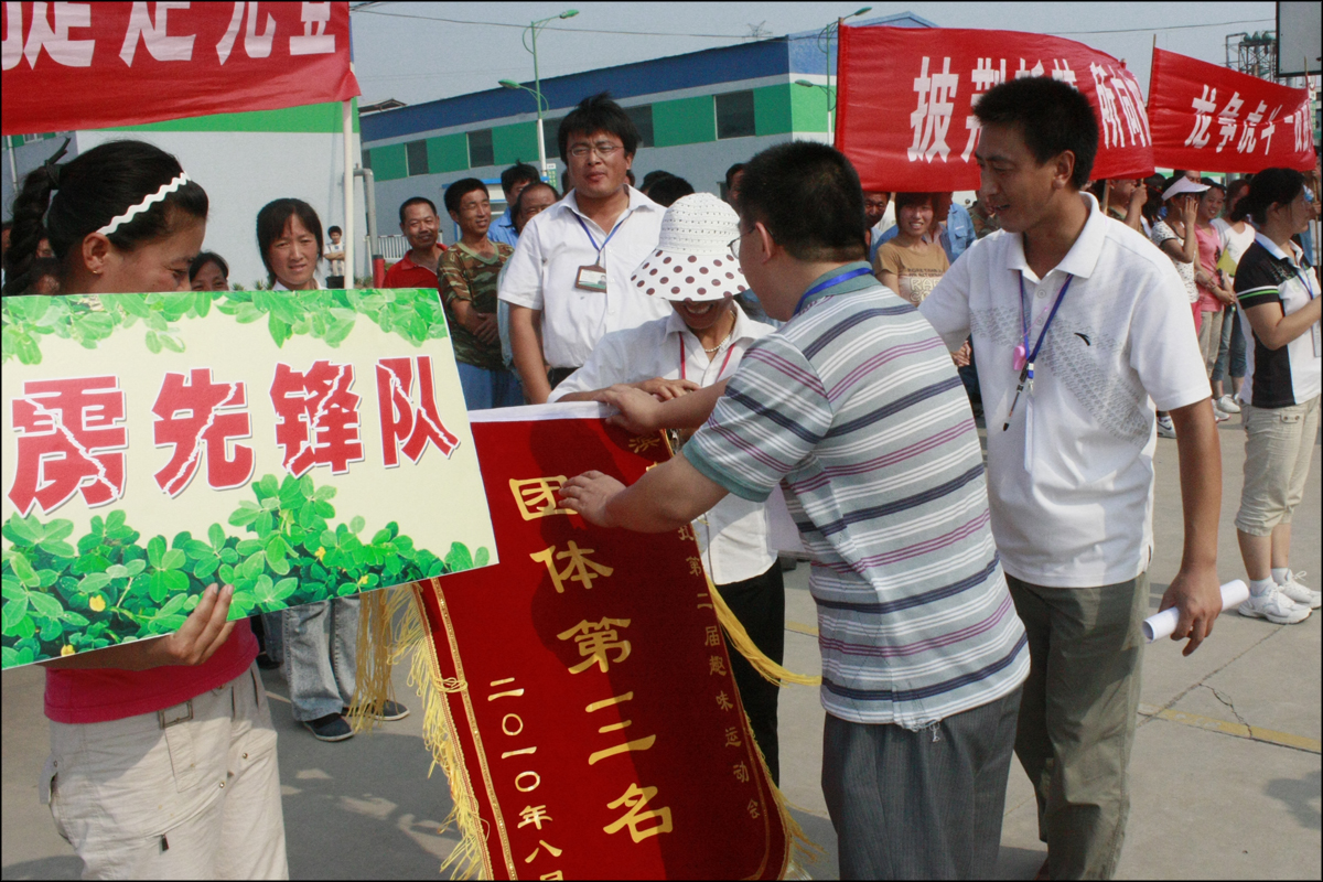 整場比賽組織緊張有序,裁判嚴(yán)謹(jǐn)公平,既氣氛熱烈,又秩序井然。最后,經(jīng)過各參賽隊的激烈角逐,科室一“群鷹隊”榮膺冠軍,一分廠“龍爭虎斗隊”榮獲總成績第二名,三分廠“霹靂先鋒隊”位列第三,科室二“封殺劈凈隊”榮獲最佳啦啦隊獎。總裁判長孟令濤及各裁判為獲獎分隊頒發(fā)團(tuán)隊錦旗并致閉幕詞,大會在歡聲笑語中圓滿落下帷幕。